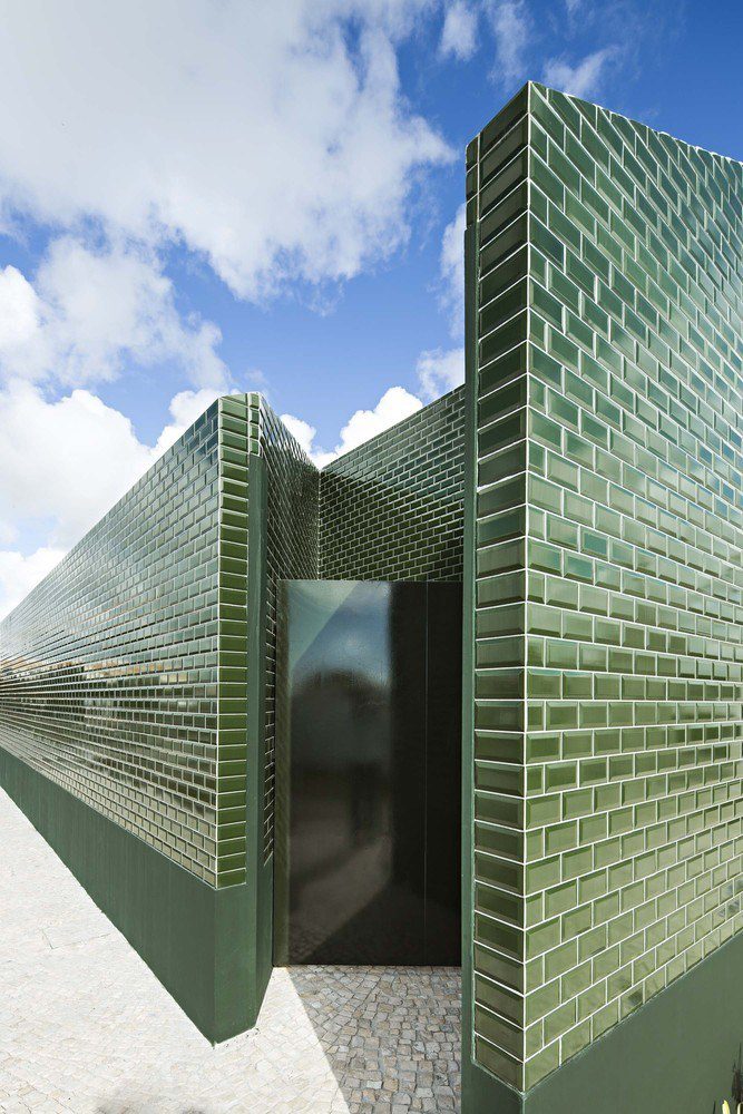 The idea of using ceramic tile coating came naturally. And it was evident: the ceramic tiles had to be green. The object should be more related to the natural elements, and less with the constructed ones, highlighting the church that is so closeby. To achieve this, to create a uniform and neutral object, the ceramic tile must coat the entire building, from the facades to the rooftop. This is a building without technology, which means that is the wind (strengthened by the north-south orientation) that dehumidifies and renews the air. All the interiors are white and have natural lighting through skylights, which reinforces luminous comfort.
