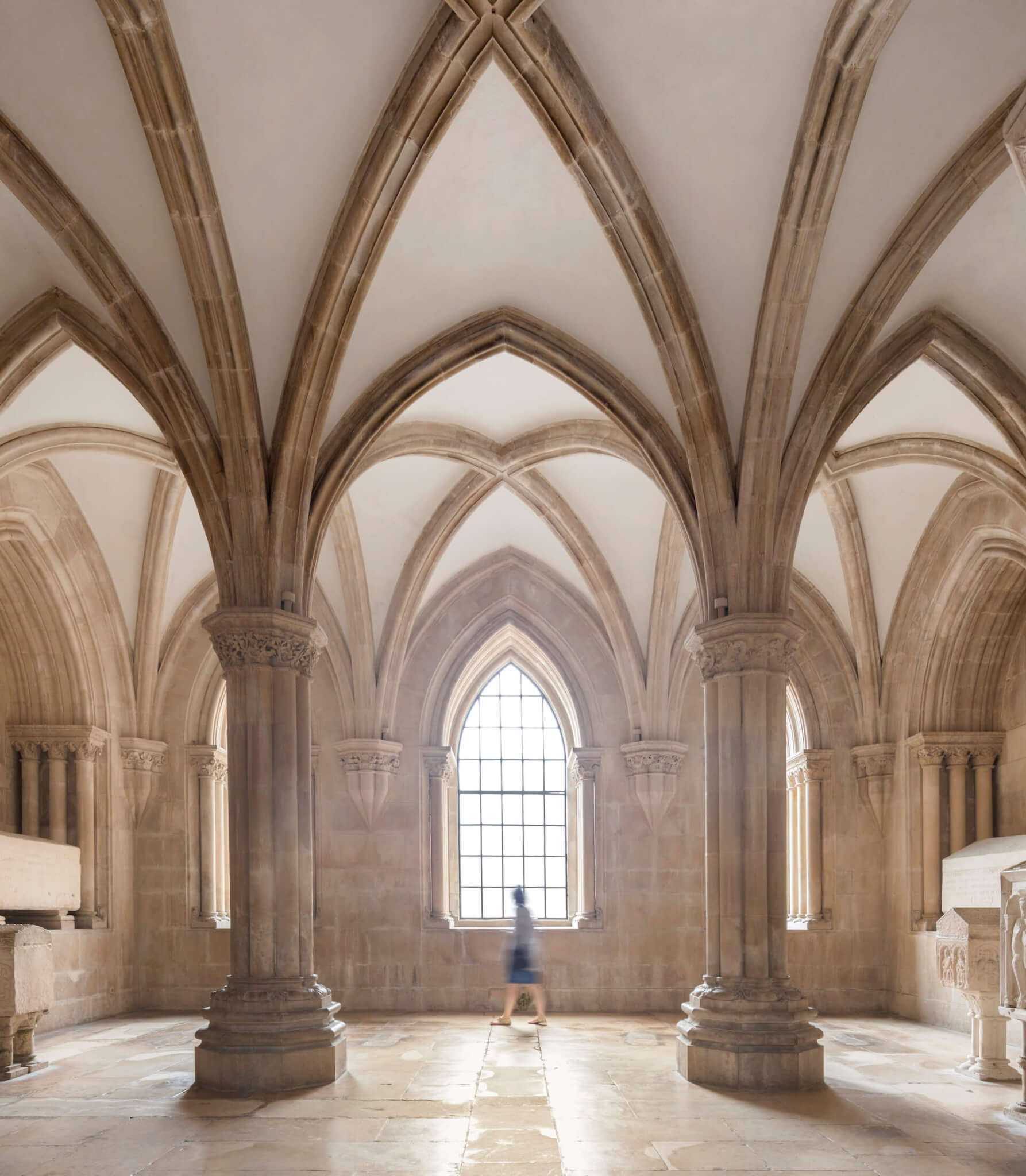 Upon entering the monastery, the grandiose central nave, stripped of any adornments, produces a sensation of elevation and spirituality. In the centre of each transept, we can see two masterpieces of mediaeval statue work – the tombs of D. Pedro I (1357-67) and D. Inês, placed in front of one another in order to enable them to meet again on the day of Resurrection.