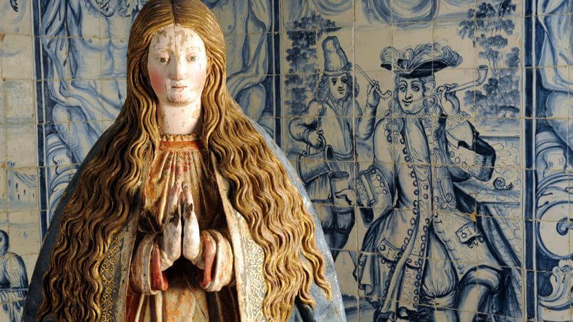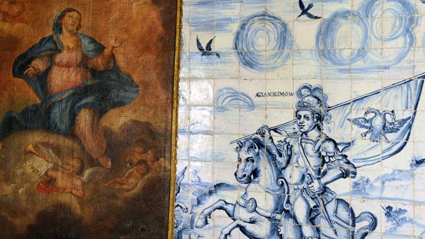 Die Fliesenmalerei in den Galerien des Kreuzgangs, die das Leben des S. Teotónio portraitieren.