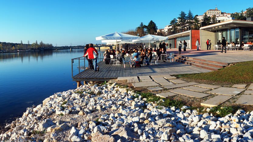 Am linken Flussufer befinden sich ein Beachvolleyballplatz, ein Skatepark, ein Kinderspielplatz, ein Picknickbereich und vier Anlegestellen für Boote. Hier kann man Schlauch- oder Tretboote sowie Kanus mieten. Sogar auf der “barca serrana”, einem traditionellen Boot, mit dem einst die Wäscherinnen unterwegs waren, kann man über den Mondego schippern.