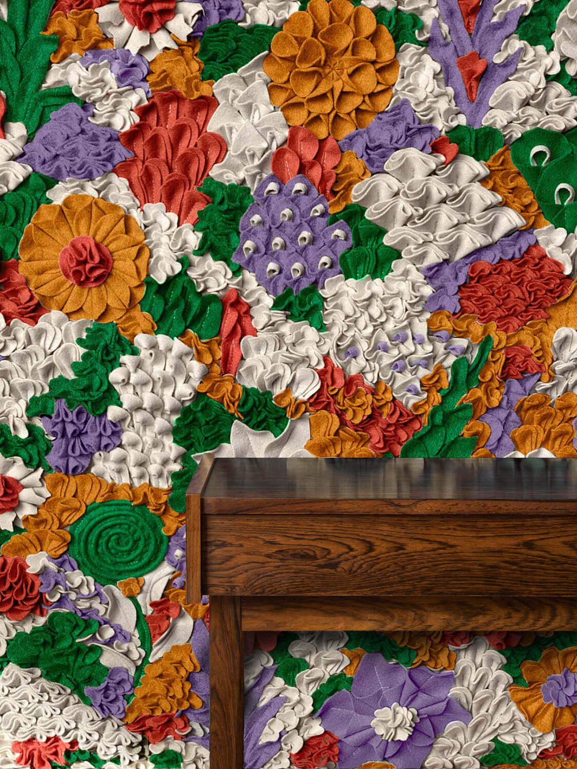 Además de estas piezas, la Fábrica Burel también produce su propia línea, imaginada por Isabel Dias da Costa, que incluye 37 colores y una interesante diversidad de texturas/puntos vinculados a la tradición y cultura portuguesas, aplicados a alfombras, cojines, couvre-pieds, bancos, bolsos, mochilas y otros productos.