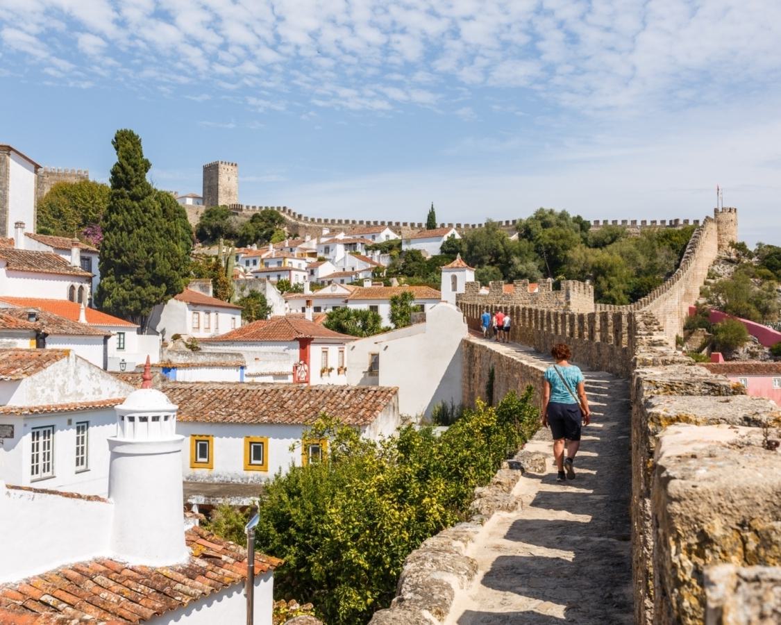 Entouré par une ceinture de muraille et couronné par le château maure reconstruit par D. Dinis, aujourd'hui transformé en auberge, Óbidos est l'un des exemples les plus parfaits de notre forteresse médiévale. Comme à l'ancien temps, l'entrée se fait par la porte sud, de Santa Maria, embellie par une décoration d'azulejos datant du XVIIIè siècle.