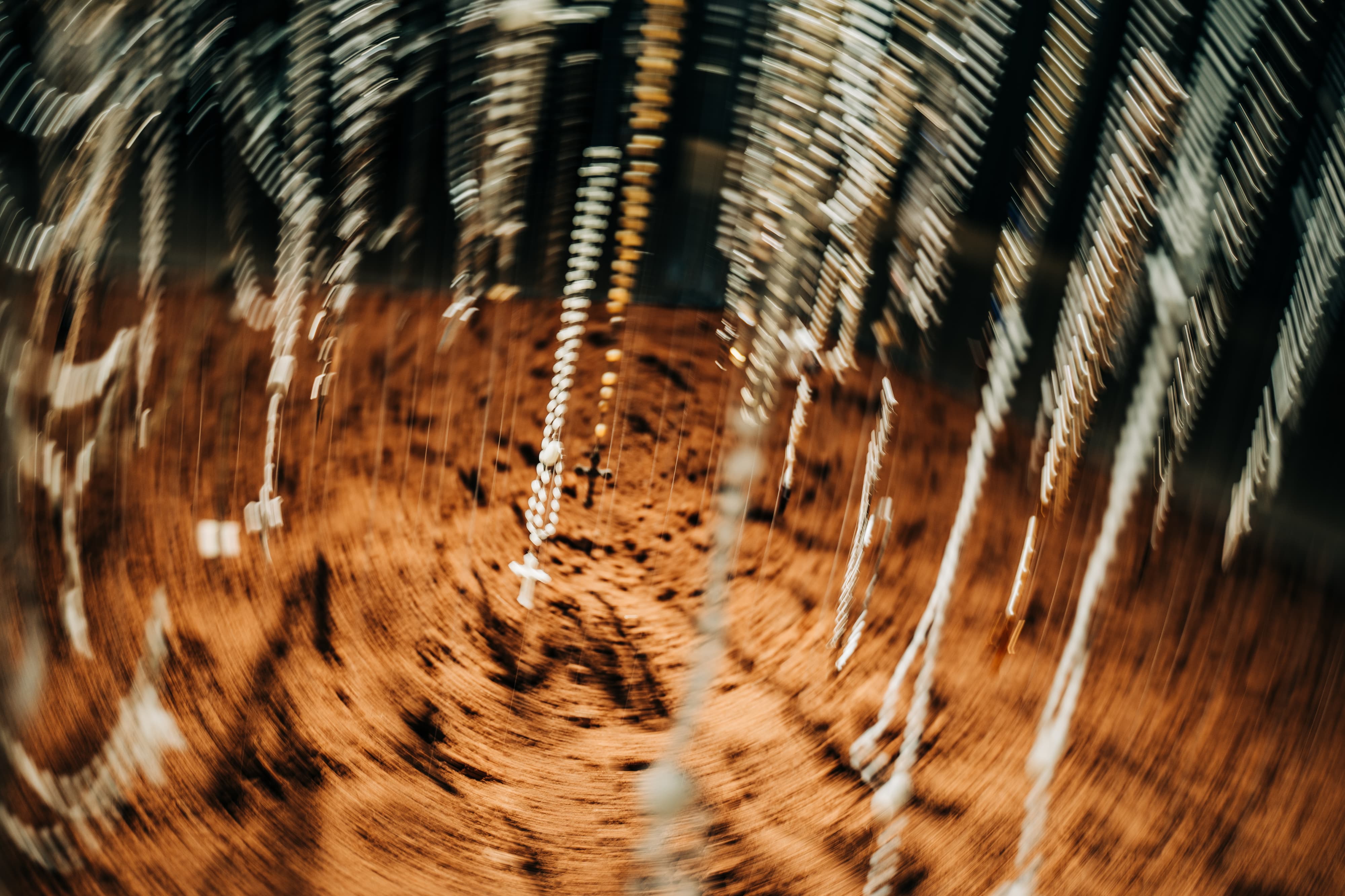 L'artiste plasticien a passé deux semaines à construire cette installation sur place. Un travail d'une grande minutie, car chaque chapelet a une signification, ainsi que son emplacement. L'œuvre se compose de 150 chapelets offerts par des pèlerins anonymes à Notre-Dame de Fátima, suspendus à une toile de fils au-dessus d'une plate-forme contenant de la terre de Fátima.