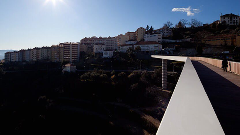 L’impressionnant pont piétonnier conçu par l'architecte minimaliste de Lisbonne, João Luís Carrilho da Graça, fait un zigzag au-dessus de la vallée sur la rive de Carpinteira. C'est un pont les plus impressionnantes du Portugal. La conception sinueuse et segmentée du pont au-dessus de la vallée le long de 220m. La baie centrale prend la perpendicularité de la vallée. La géométrie de son profil interfère avec l'orientation visuelle et la perception des hauteurs de la Serra da Estrela et l'amplitude de Cova da Beira sur la zone inférieure.