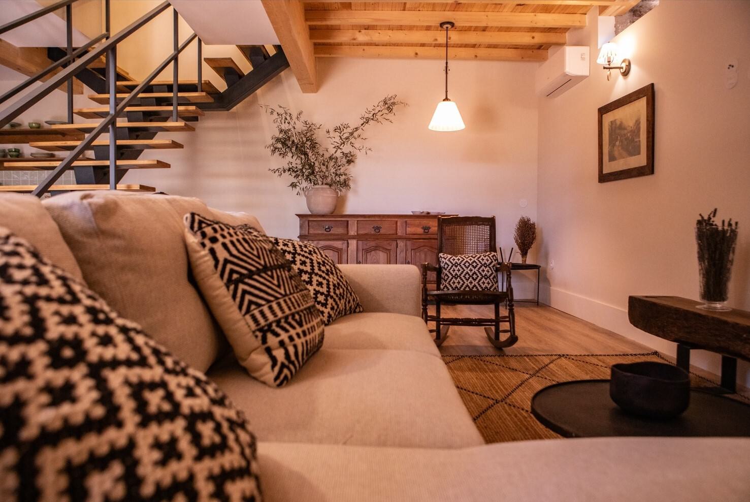 La rénovation des six maisons portant le nom des arbres fruitiers a été conçue de manière durable, en combinant des éléments ruraux avec un décor contemporain, dominé par des tons neutres et la sobriété. Les murs d'origine en granit ont été conservés, de même que les matières premières naturelles et le bois recyclé.