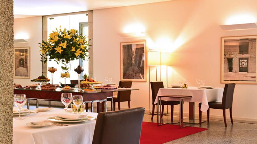 The restaurant of the Pousada of Viseu stands out for its outstanding traditional gastronomy, along with an elegant exquisite décor. This restaurant has an own entrance through the street.