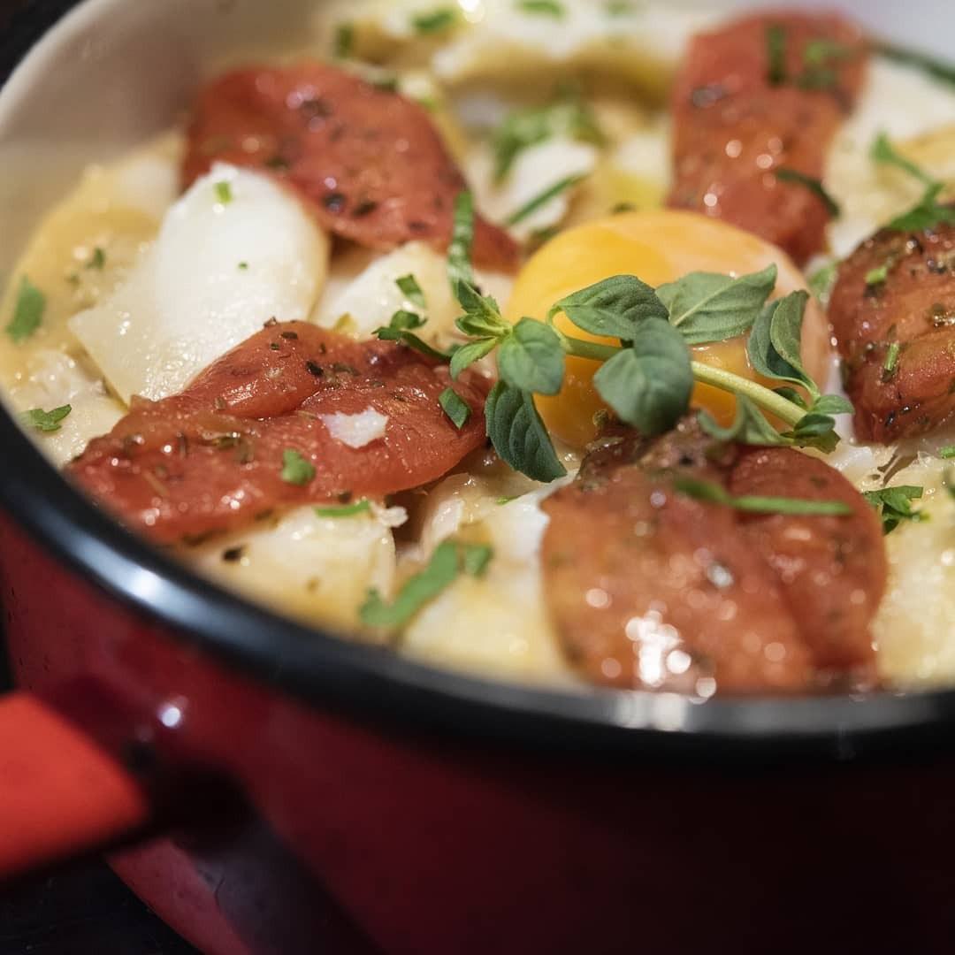 The list of specialities is full of surprising flavours: smoked sausage "bonbons" with apple and curry sauce; chestnuts, mushrooms, old cheese and smoked ham; confit pork cheeks with chestnuts, sweet potatoes and parsnip; typical Covilhã puff stuffed with meat and covered in vinegar; wild boar cooked in an iron pot; roasted pork sandwich with parsnip and Serra da Estrela cheese; codfish carpaccio; tuna ceviche; cold tomato soup and parsnip Napoleon, an irresistible sweet puff pastry!