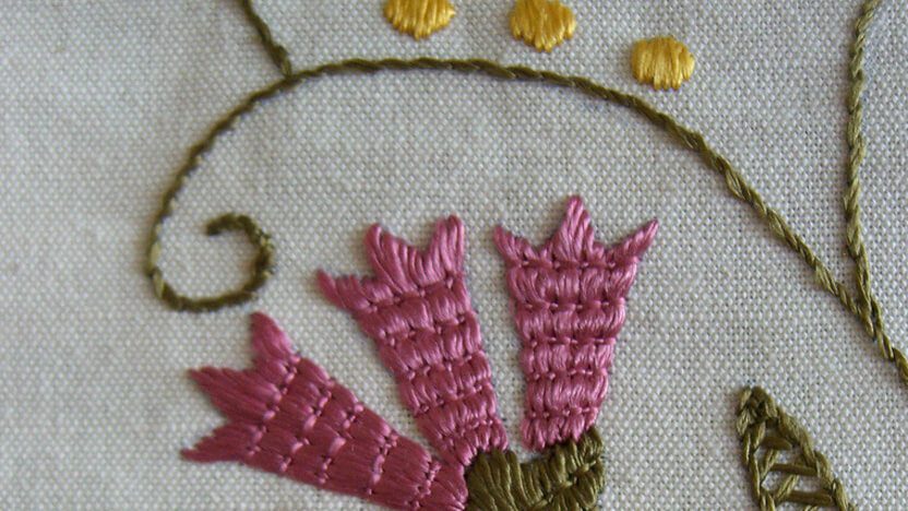 The “albadarra”, an Arabic term that means a vase with two handles, is a frequent theme in the embroidery of Castelo Branco, both in the form of an elegant vase, as well as a low and wide bowl, evoking the vessel as a symbol of fertility and probably inspired by the theme of the Tree of Life with eastern origins.