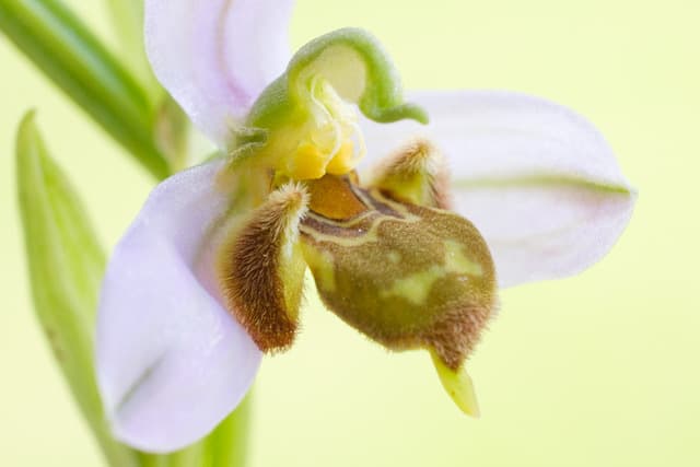 Charles Darwin (1809 – 1882) considerava as orquídeas das criaturas mais complexas do mundo. Estas imitam a forma, as cores e os aromas das abelhas, de forma a atrair os insectos. Tal como todas as orquídeas, esta flor é composta por três sépalas e três pétalas, sendo que a pétala mais desenvolvida, o labelo, imita perfeitamente o inseto que a poliniza, a abelha macho Eucera longicornis. Quando o inseto encontra a flor (seja pela visão ou pelo cheiro, pois as orquídeas libertam feromonas que lembram as fêmeas dos insectos que as polinizam), tenta copular com ela, fazendo com que as polínias (a parte masculina da flor) caiam na sua cabeça. Quando se "sente enganado", voa para outra flor para tentar a sua sorte. Se esta estratégia de sedução falhar, as orquídeas-abelha têm o poder de se autopolinizar.