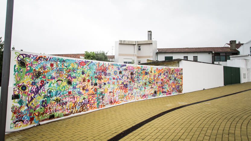 The municipality of Estarreja has created a consistent street art route that started with the inspiring work of Bordallo II, depicting a colourful Kingfisher out of waste. This work can be seen in the municipal park of Antuã, in Estarreja. After the success of Bordallo II work “Guarda-rios”- created for the Birdwatching Fair ObservaRia – Urban Art Festival ESTAU has brought the community and art together through several ways, such as mural painting, installations, workshops, movies, conferences, guided visits and performances.
